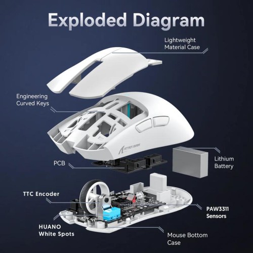 ماوس الألعاب ATTACK SHARK X11 مع قاعدة شحن مغناطيسية، ومستشعر الألعاب PixArt PAW3311، وتقنية بلوتوث/2.4 جيجا هرتز لاسلكي/سلكي